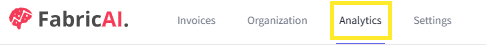 - The Analytics tab is visible only to the organization's main users defined in the FabricAI portal.