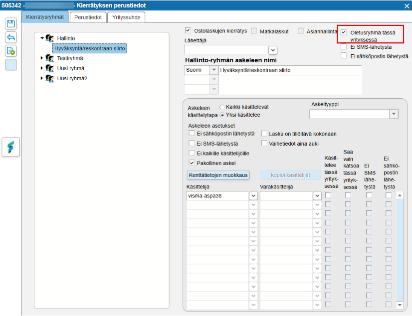 2. Ensure that the checkbox “Finvoice and purchase invoice service invoices are transferred to the company's default circulation group” is selected