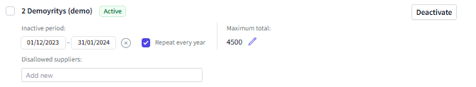 b) you can set an inactivity period in the Progressive Automation settings, during which Progressive Automation is inactive and does not automatically process any invoices. Additionally, you can specify that the same setting will occur next year. Note that this date restriction is based on the invoice's arrival date, meaning when the invoice has been entered into the accounting program.