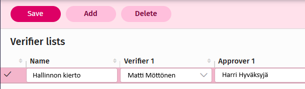Note! If there is only one verifier list in Procountor, invoices automatically go to that circulation - no separate settings are needed for this.