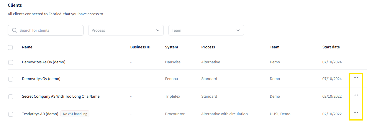 2. Click the button with three dots on the right side of the desired client: