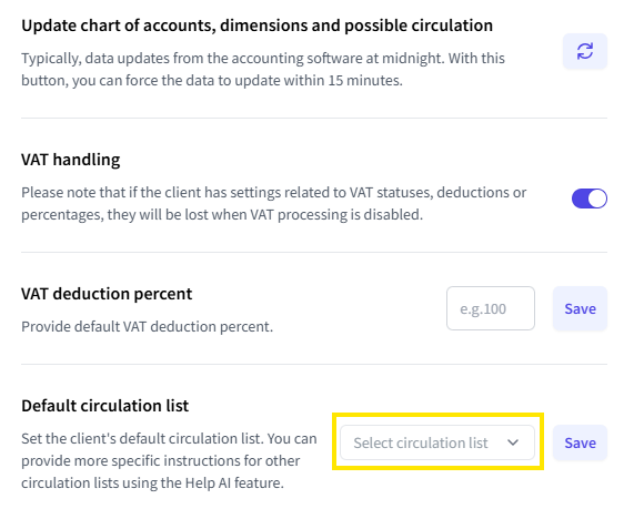Help AI -function was expanded on November 6, 2025, allowing AI to be instructed in setting circulation lists. Read more about the Help AI function here. This extension is intended for clients using the 'Alternative with circulation' process (read more about processes here.)