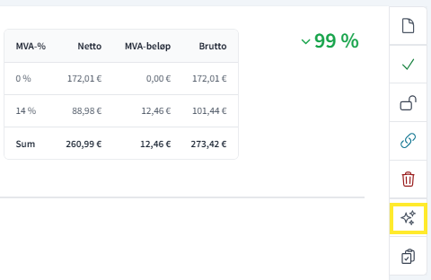 Når funksjonen er aktivert, finner du en ny knapp på høyre side av fakturaen, der den gamle tommelen ned-knappen var, som vist på bildet nedenfor