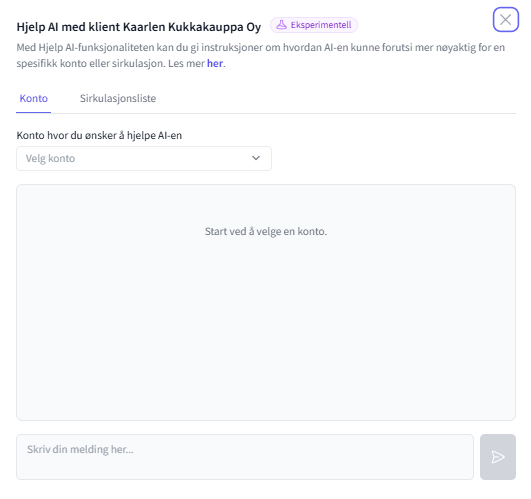 Velg først konto hvor du ønsker å hjelpe ai-en og skriv deretter hjelpeinstruksjon for ai