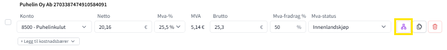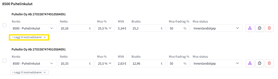 I FabricAI-portalen kan du legge til et beregningsobjekt / kostnadssted / dimensjon til fakturaen manuelt på tre forskjellige måter.