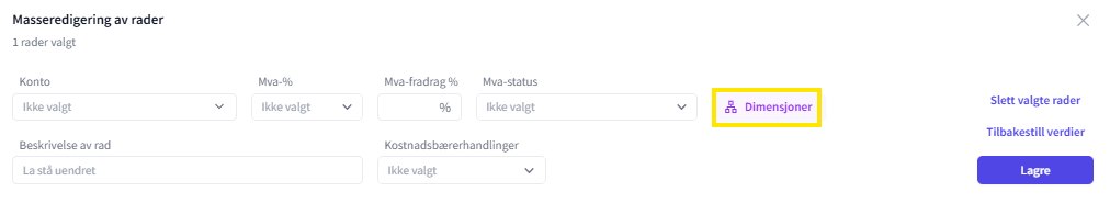 Du kan også legge til beregningsobjekter i masse ved å velge flere linjer og klikke på den samme dimensjonsvalg-knappen fra masseeditoren som åpnes nederst på siden.