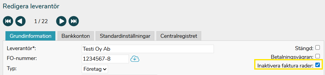 I FabricAI-portalen kan du se vissa fakturor med rader märkta "Kontrollera summa" ("Tarkistettava summa") på gul bakgrund. Sådana rader beror på att fakturaleverantören har skapat fakturan matematiskt felaktigt, det vill säga att den angivna slutsumman på inköpsfakturan och slutsumman beräknad via inköpsfakturans rader inte stämmer överens. Ofta är summan på en sådan rad en cent eller några cent.
