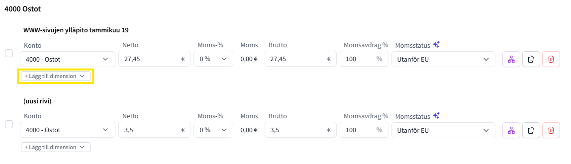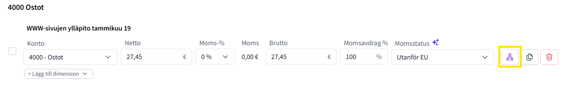 2. Genom att klicka på dimensionsvalsknappen till höger om kostnadsraden