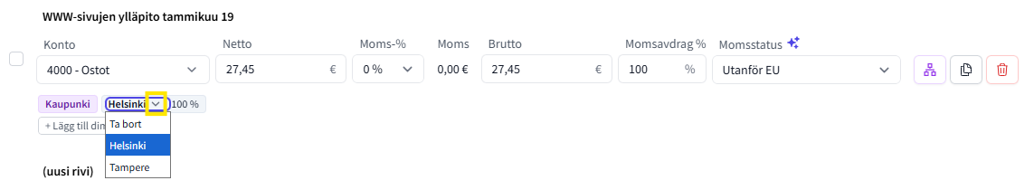 I FabricAI-portalen kan du lägga till ett kostnadsställe / dimension till fakturan manuellt på tre olika sätt.