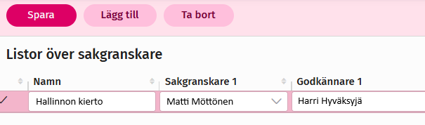 - Öppna ”Listor över sakgranskare” från det övre vänstra hörnet