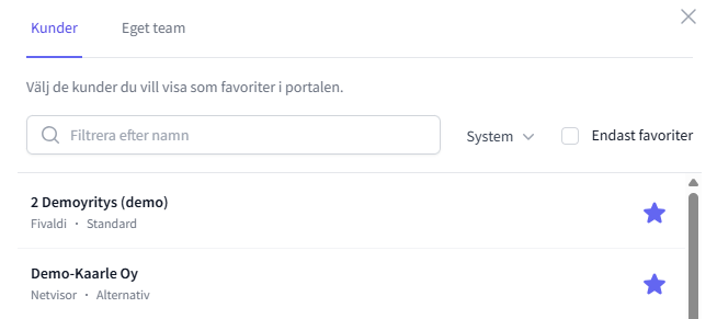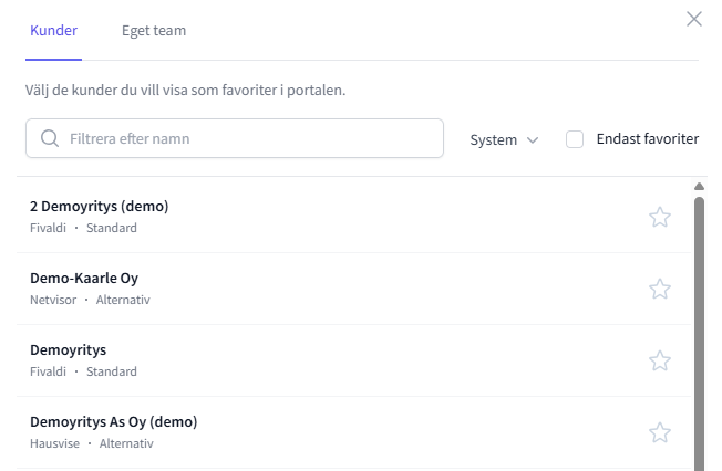 - Klicka på stjärnan bredvid kunden för att lägga till den på startsidan under dina favoriter.