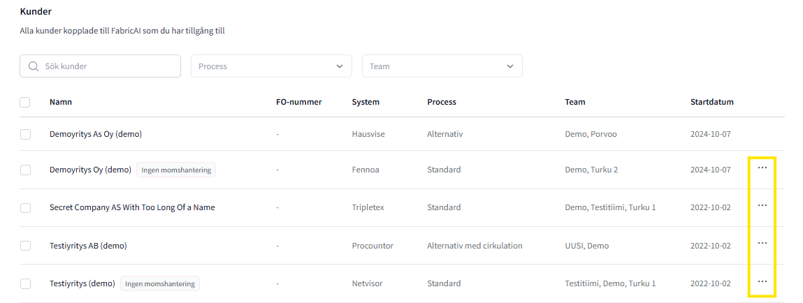 2. Klicka på knappen med tre punkter till höger vid den kund du önskar: