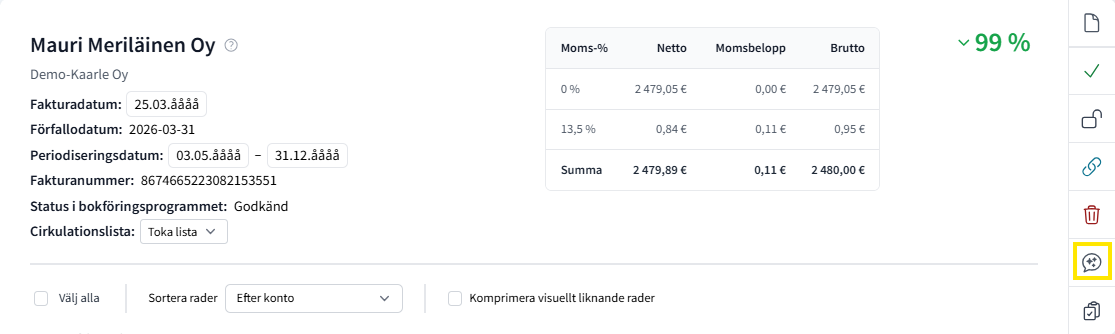 1.Öppna Hjälp AI-funktionen från den faktura du valt